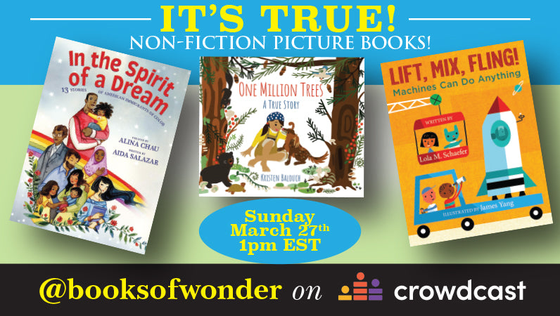 Don't miss this wonderful chance to meet AIDA SALAZAR, the award-winning author of In the Spirit of a Dream: 13 Stories of American Immigrants of Color, LOLA M. SCHAEFER, author of Lift, Mix, Fling!: Machines Can Do Anything, and KRISTEN BALOUCH, the author/illustrator of One Million Trees!