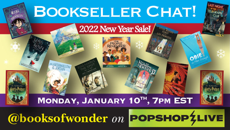 Join us Monday, January 10 at 7PM ET for our next Bookseller Chat on Popshop Live, where our knowledgeable staff members dive into a specific topic of interest for all you children’s book lovers. For our first Popshop Live of 2022, Elena and Zoe will be chatting about our fantastic New Year’s Sale where select titles are 20% off. If you want a sneak peak, you can check out the New Year’s Sale online here.