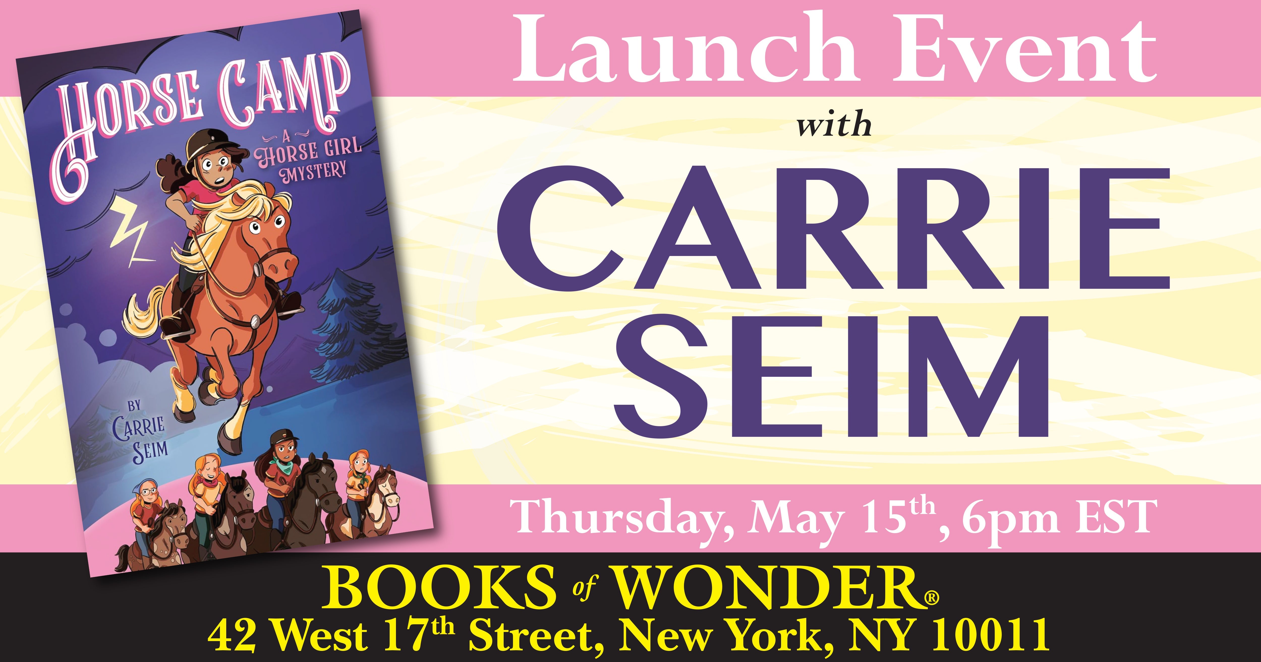 Join us in-store for the launch of a fun new adventure in the Horse Girl series, Horse Camp: A Horse Girl Mystery by CARRIE SEIM! Saddle up and be ready for anything because this time, Willa's off to the sleepaway camp of her dreams - complete with trail rides, "ghorst" stories, and (gasp) horse boys.