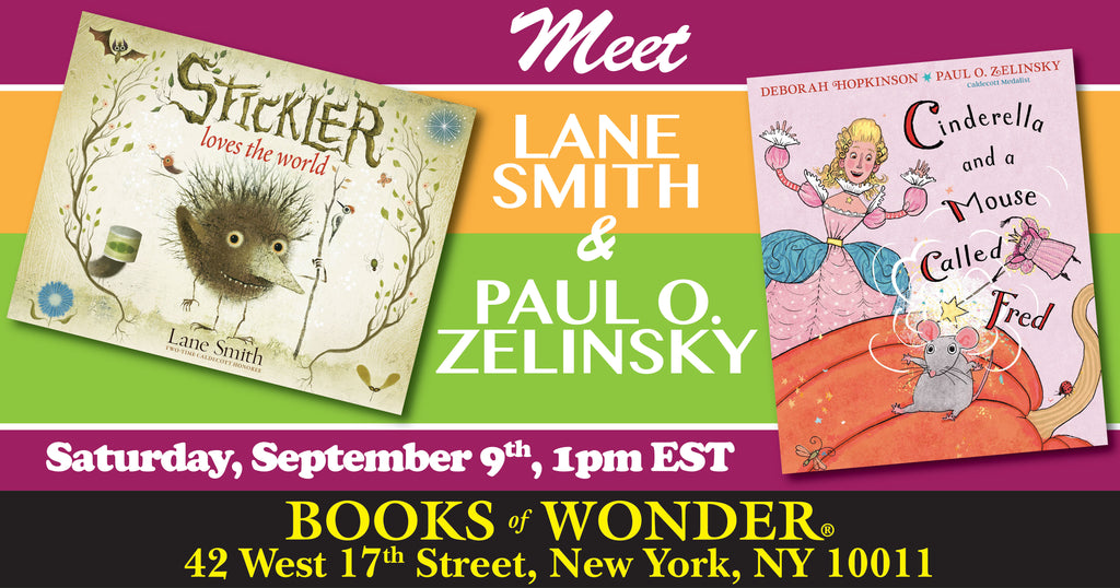 Stop into our 17th St store to meet and spend an hour or two with two wonderful authors and hear them talk about their latest titles! Come discover Cinderella and a Mouse Called Fred by Caldecott medalist PAUL O. ZELINSKY and Stickler Loves the World by two-time Caldecott Honoree LANE SMITH!