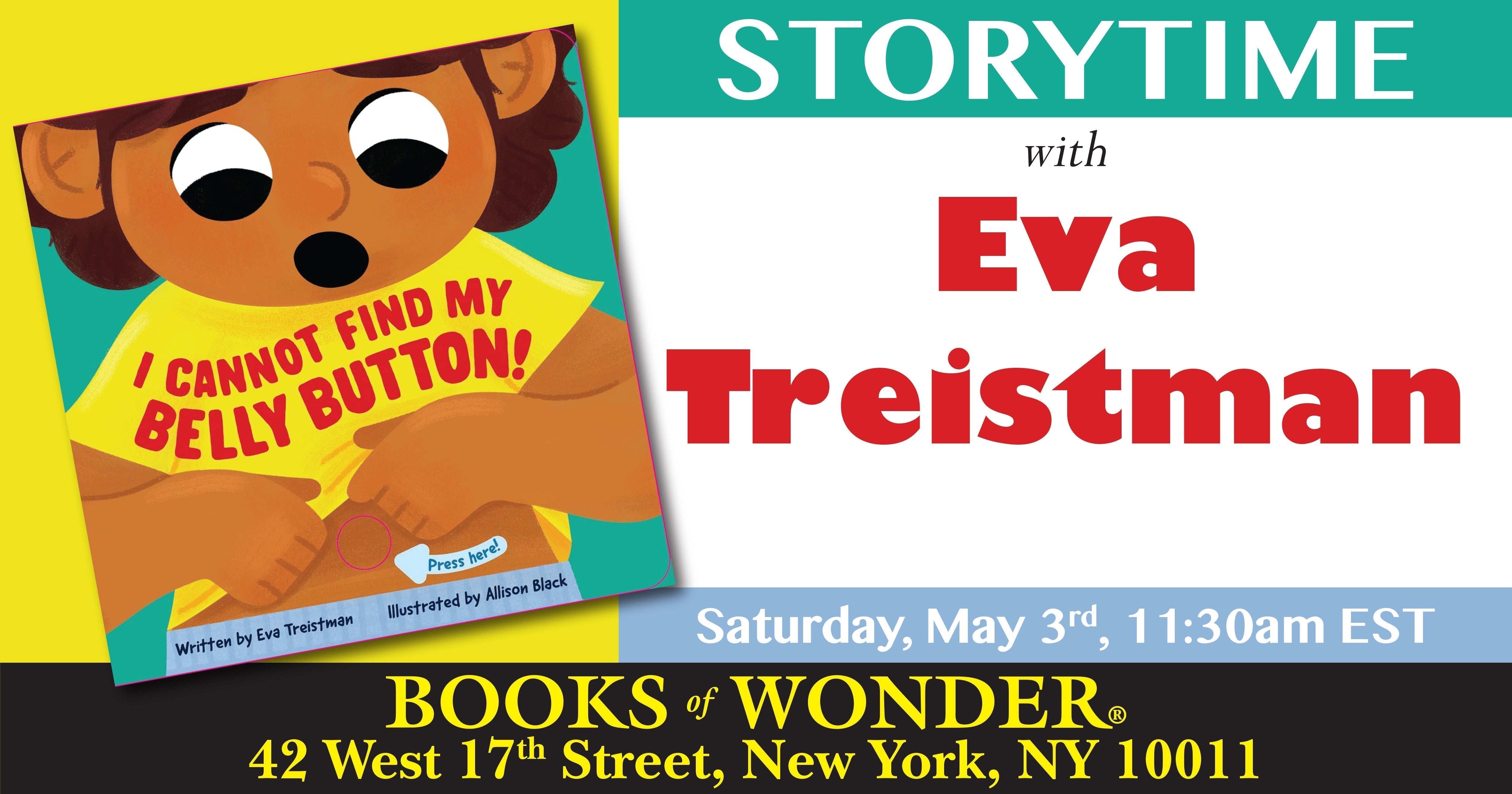 Bring your siblings, bring your cousins! It’s time for fun with bellybuttons! Books of Wonder is so excited to have EVA TREISTMAN in-store for a fun, rhyming storytime with her board book: I Cannot Find My Belly Button! Young readers will delight in this search for the mysterious belly button while learning to name the parts of their body.