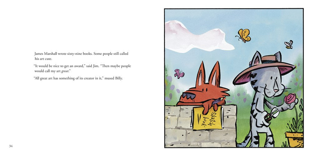 Author and illustrator James Marshall let kids in on the joke. He knew little kids were smart, and he didn't talk down to them in his stories. He was right—kids loved his picture books. Decades after his death, the characters he illustrated—Miss Nelson, Viola Swamp, George and Martha, Goldilocks, Fox and His Friends—are still beloved. James Marshall should be at least as famous as his characters, and now he is, in his own picture book biography. Created in an irreverent style inspired by James Marshall's own art and storytelling, this delightful biography, featuring James as a fox, celebrates in both form and content what made James—“Jim” to his friends—so talented, funny, and special, and what has made his tales last. This time, Jim is the main character.