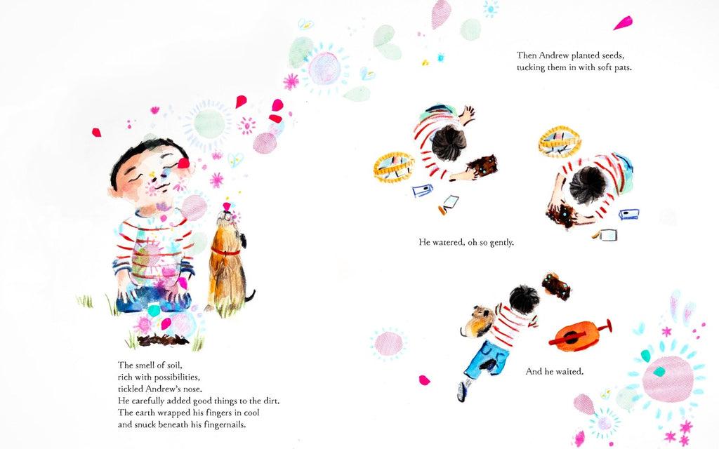 Andrew loves plants, but he’s overwhelmed by the fancy plots in his neighborhood—too big, too tall, too much.