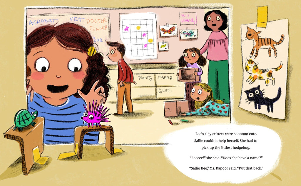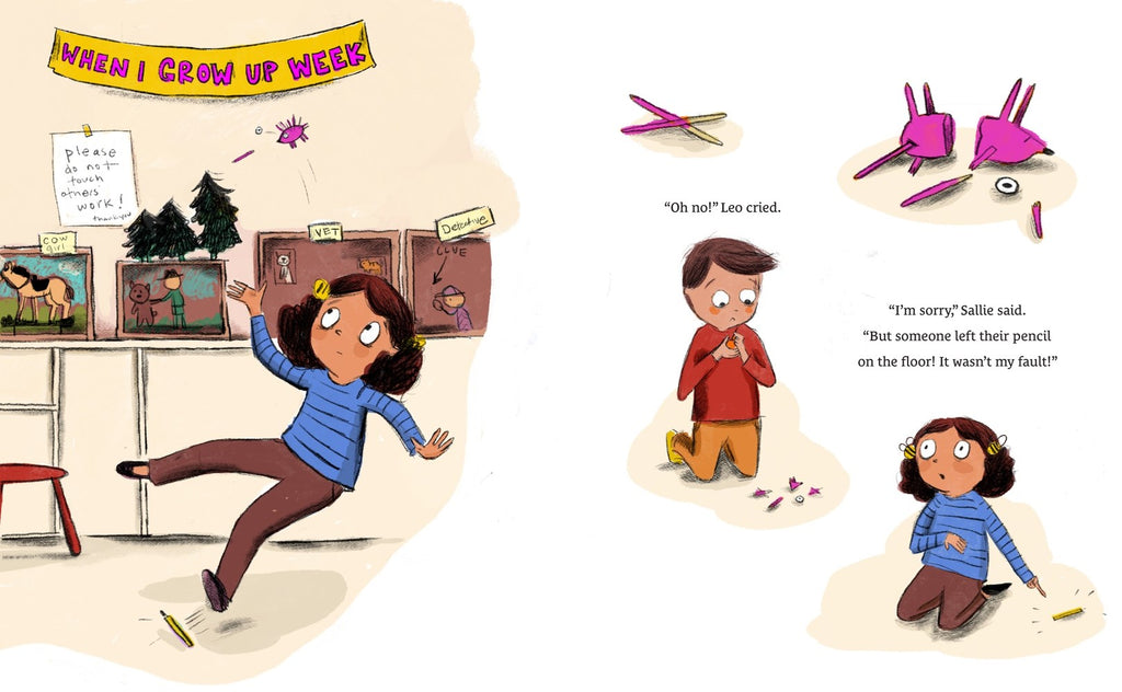 Sallie Bee didn’t mean to break Leo’s project, but it wasn’t her fault! Someone left a pencil on the floor—of course she tripped!