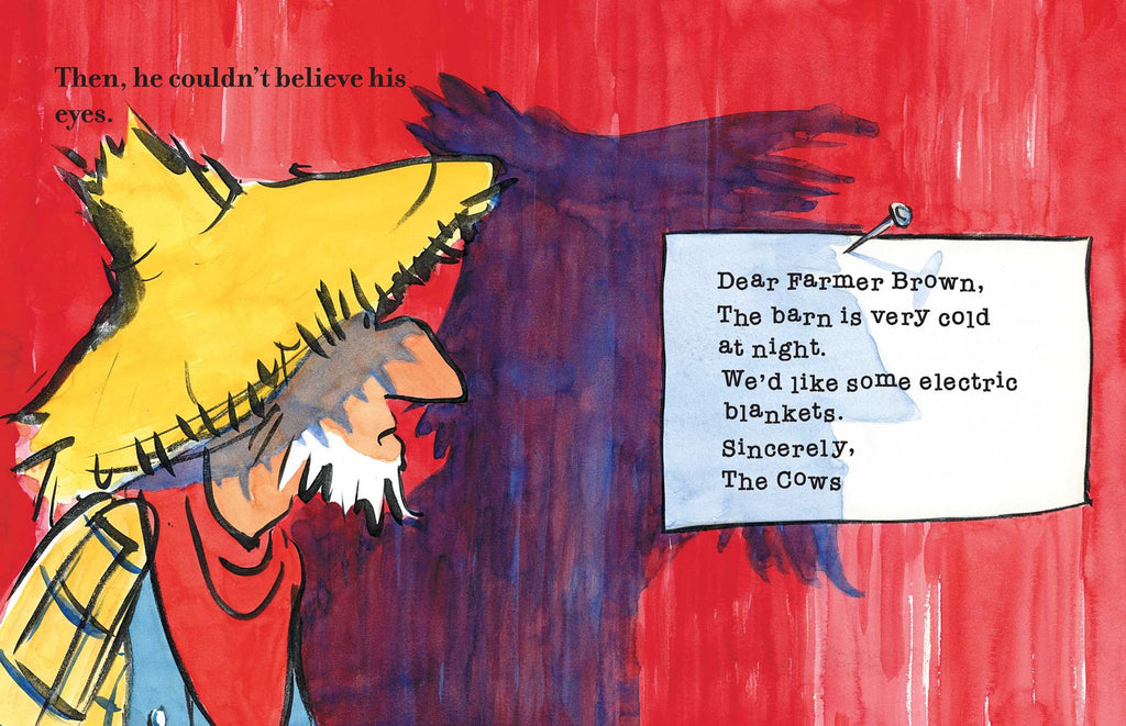 It’s the typewriter heard ‘round the world. When Farmer Brown’s cows begin leaving him demanding notes, that’s when his troubles start—and the animals’ fun commence! Celebrate twenty-five years of barnyard shenanigans with this special anniversary edition of the story that started it all, Click, Clack, Moo—now with a bonus sticker sheet inside!