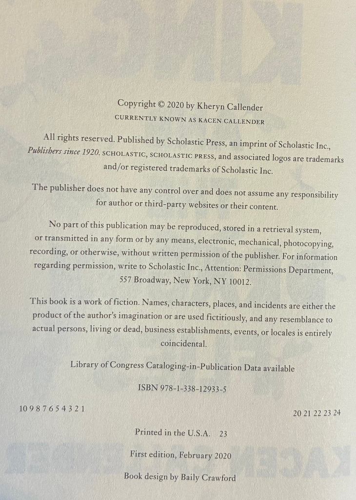 CALLENDER. Kacen. King and the Dragonflies. NY: Scholastic [2020]. 8vo, [viii] 263pp. Blue board spine stamped in white with light green boards decoratively stamped in blind. Green endpapers. A fine copy in original color pictorial dust jacket (no medal affixed). With a bookplate signed by Kacen Callender laid in!