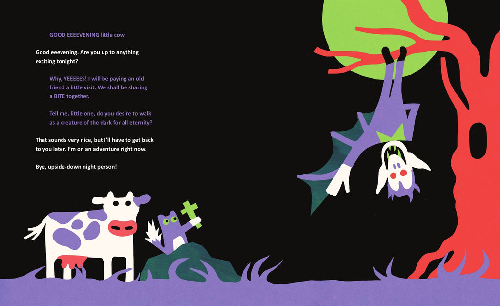 It is nighttime and the cow is loose. In this vibrant and silly picture book, curiosity leads to some strange encounters indeed…