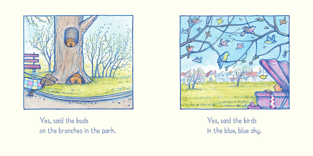 But wait! What is this icy gust of wind? Why are snowflakes falling from heavy gray clouds? Will it ever be spring? Yes, says the sun. Just be patient.