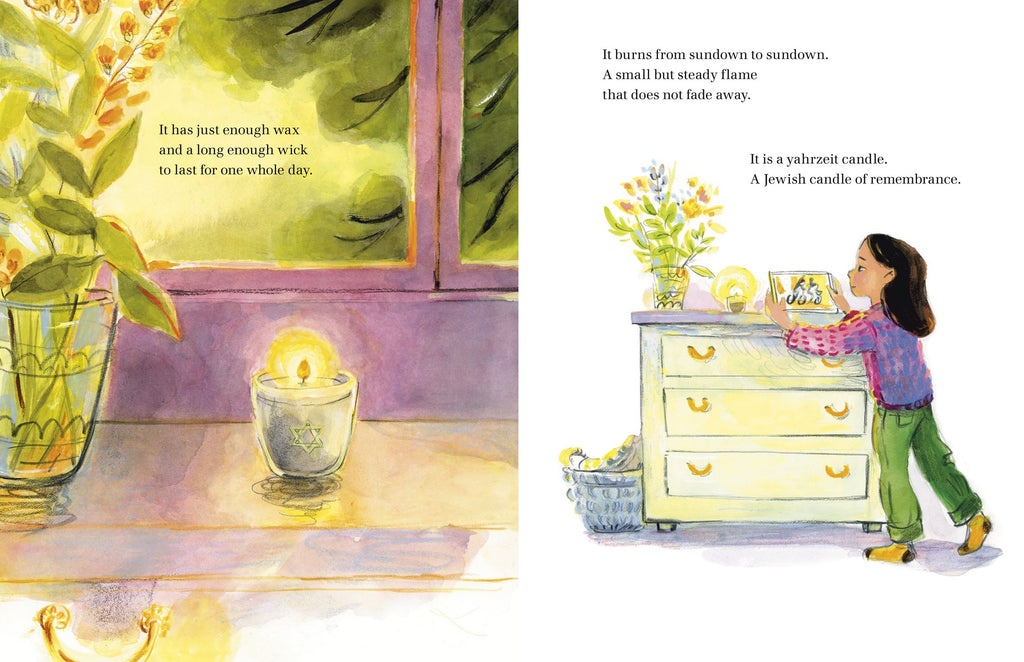 A girl and her mom light a candle to honor the memory of a loved one in this gorgeously illustrated picture book about this special Jewish tradition.