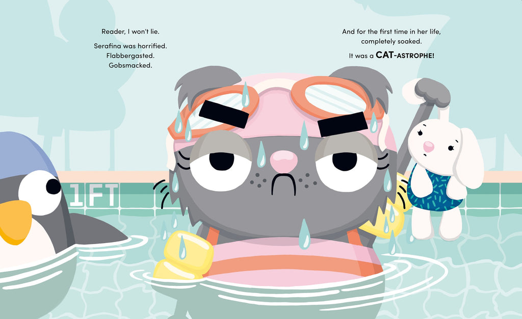Meet Serafina. If there’s one thing you should know about Serafina, it’s that she absolutely, positively HATES water. Running faucets, rain, or the sea? No thank you. So even though she looks fantastic in goggles, Serafina is NOT happy to be forced into a swim class by the powers that be. NOTHING can convince her to get into that disgusting pit of seething water. Nothing, that is, except maybe a very beloved old friend who needs a hand.