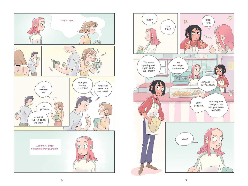 Now living among humans, Ruby attempts to lie low and fit in as a barista at the university coffeehouse, Inkcap. Working there gives her plenty of opportunity to figure out what problems people need solving. And as far as she can tell, most humans’ biggest problem is struggling to find happiness. And what makes them happy? Love! So, Ruby uses her superpowered brain to play cupid.