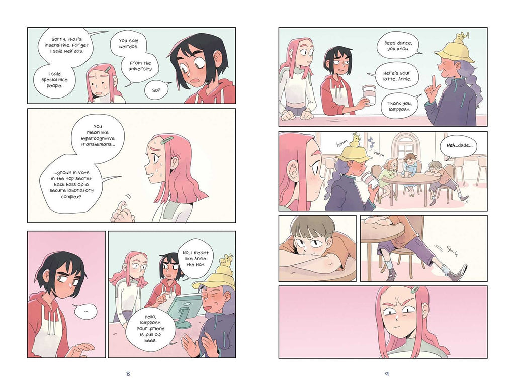 A genius humanoid escapes the university lab where she was made and gets a job at a local coffee shop in this “hilarious...excellent” (School Library Journal, starred review) young adult graphic novel perfect for fans of Giant Days and Heartstopper.