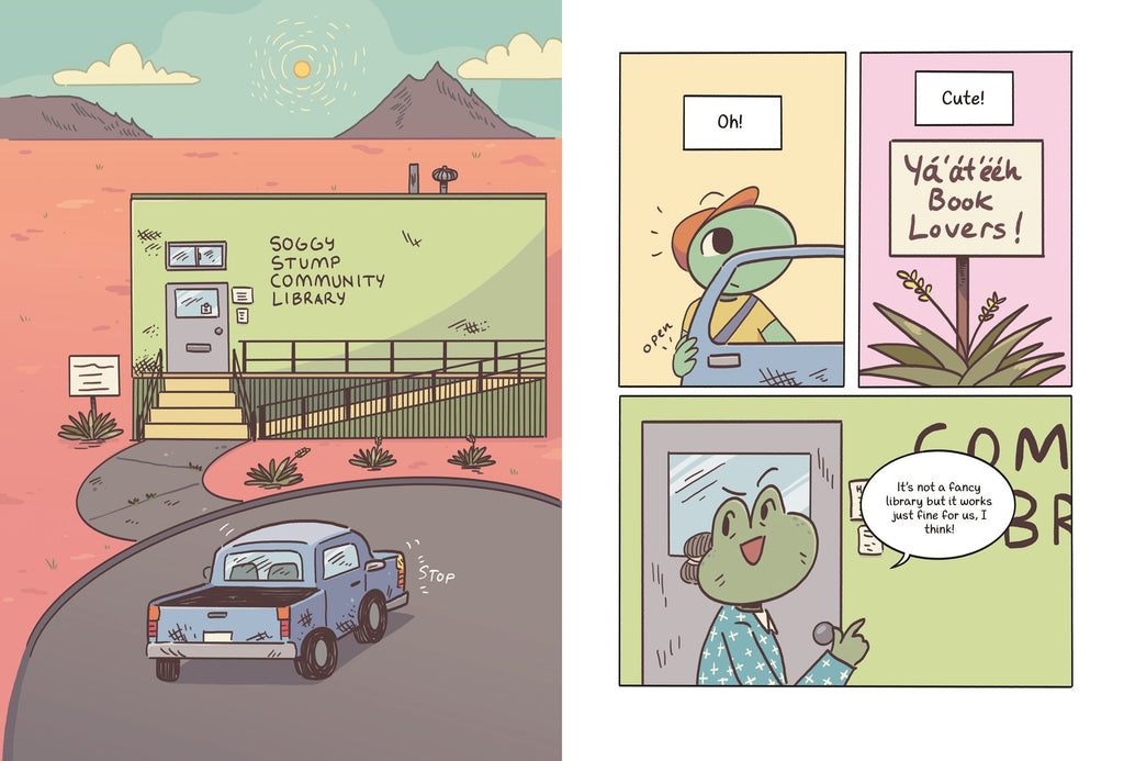 Spend your summer on Soggy Stump! This cozy, colorful, and amphibious graphic novel adventure draws inspiration from the author's background as a Diné librarian.