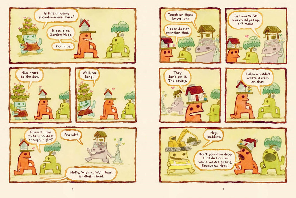 Book 2 includes 6 hilarious adventures in a wonderfully off-the-wall universe where everyone has something on their head! Includes bonus content: Storytime with Library Head, Notable Spots with Tour Bus Head and Sandcastle Building with Sandcastle Head.