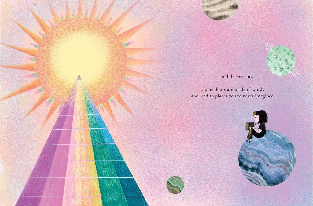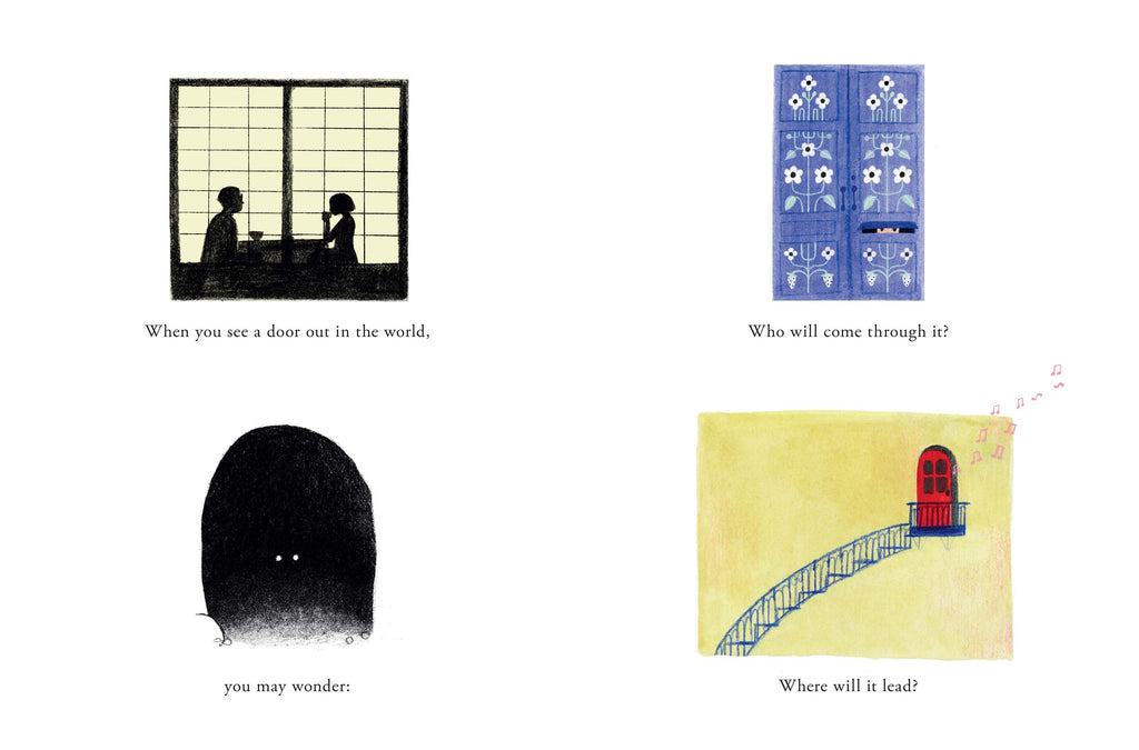 There are so many kinds of doors: swinging doors and sliding doors, screen doors for feeling the night air, revolving doors for going around and around. Doors that open into . . . anything you can imagine! A birthday party, a shipwreck on the salty sea floor, a fairy's tiny home, a slide into a room full of pillows! Or even the fantastical future ahead. Where will the doorway of this picture book lead? The only way to find out is to turn the page and go through . . .