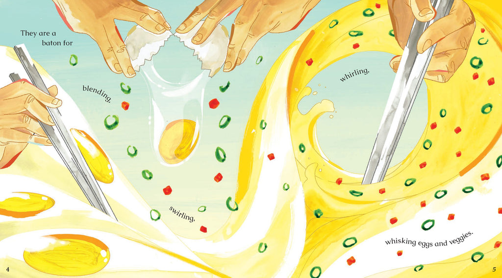 Chopsticks are our sous‑chefs in the kitchen. They are shape, texture, and art. They are also remembering, celebration, and good luck. Learn about the countless things these amazing utensils can be in this picture book that makes learning about chopsticks as joyful as using them!