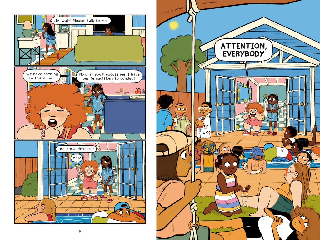 When her name gets skipped at the eighth-grade graduation ceremony, Rose decides she is done being invisible. She’s determined to finally stand out and make her unfulfilled middle school dreams come true at the upcoming pool party. But she’s not the only one who wants to make a splash...BFFs Liv and Juhi are on the verge of a friend break-up when Juhi reveals her family is moving, and Liv uses the party as a chance to scout for a new bestie. Queen bee Maya was forced by her mom to come to unpopular Dustin’s party to be “nice”. And meanwhile, her not-so-social cousin Paul is just trying to avoid all the pool party pandemonium.