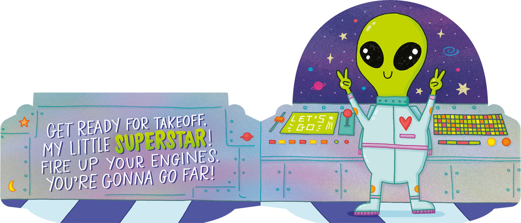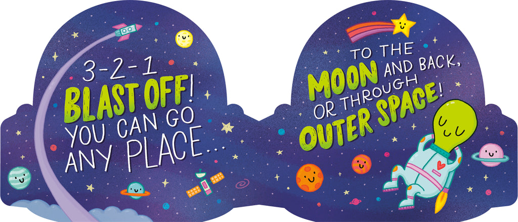Get ready to blast off into outer space and explore the galaxy with some alien friends! Filled with sweet affirmations, words of positivity, and plenty of puns, this book makes for a perfect bedtime read-aloud or graduation gift.