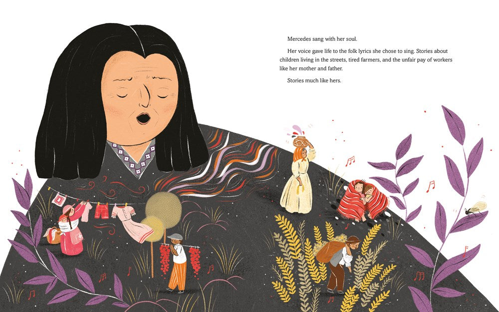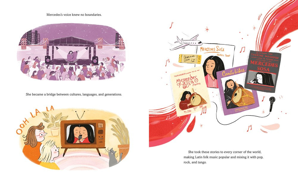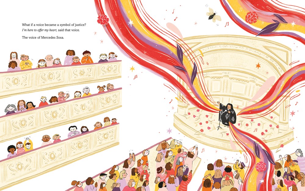 As a teen, she won a local radio contest, and as her confidence grew, so did her fame. From a folk festival to Carnegie Hall and the Sistine Chapel, Mercedes performed the world over, sharing stories through song. But not everyone loved her singing: a military dictatorship ruled over Argentina, and they saw the power of her voice. Even from exile, Mercedes Sosa was a beacon of freedom for her people, and when she returned to her homeland, she persisted in her work: to be the voice of the voiceless.
