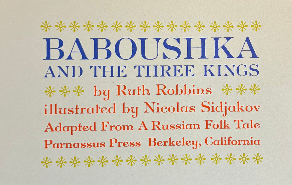 First edition. 1961 Caldecott Medal Winner! A charming retelling of an old Russian folktale about an elderly woman’s endless search to find the Christ child.