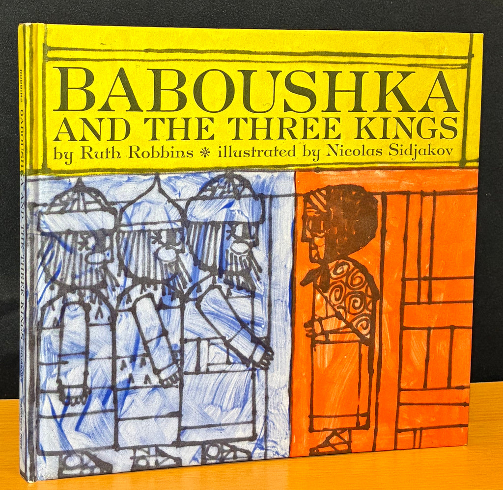 ROBBINS, Ruth. Baboushka and the Three Kings. Illustrated by Nicolas Sidjakov. Berkeley, CA: Parnassis Press [1960]. Oblong 8vo, [24]pp. Color pictorial boards. Color pictorial endpapers; color illustrations on every page. Lower edge a tad rubbed, boards a tad warped, else a clean bright copy in original color pictorial dust jacket (medal affixed, light rubbing to spine ends). Signed by the artist, Caldecott Medalist Nicolas Sidjakov!