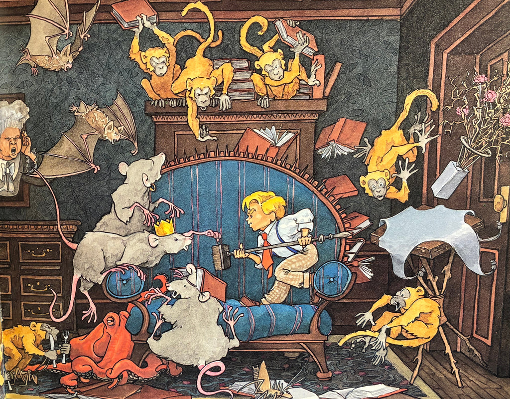First edition. While visiting his great-aunt, a young boy spends the afternoon being chased through the house by an assortment of creatures led by the Mouse King. A charming picture book, and the debut picture book from this author/artist.