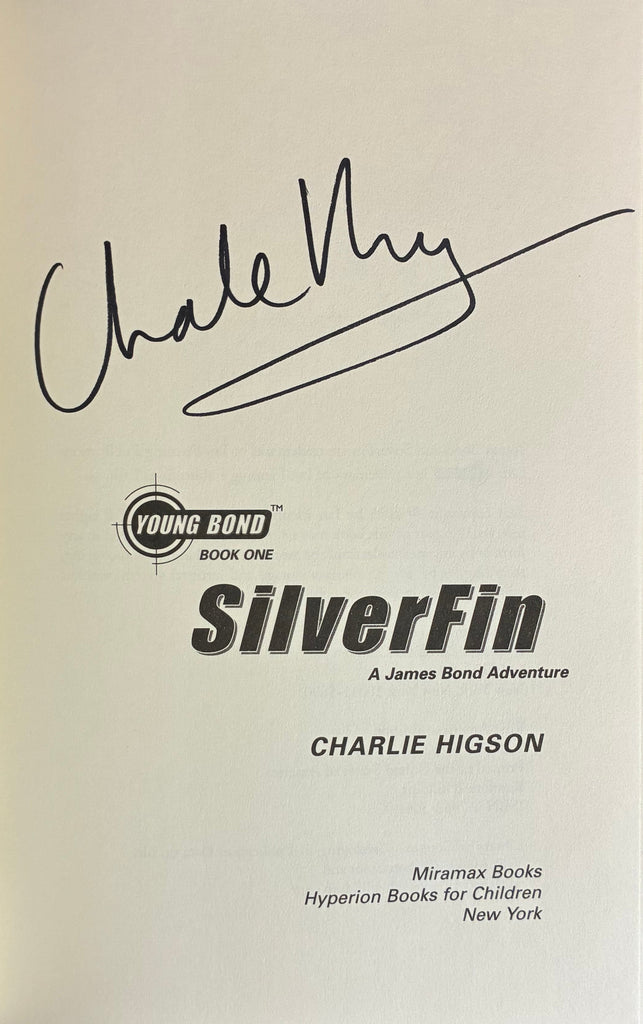 HIGSON, Charlie. Silverfin. A James Bond Adventure. Young Bond Book One. NY: Miramax Books [2005]. 8vo, xvi 335pp. Gray boards with spine stamped in red. A fine copy in original color pictorial dust jacket. Signed by the author, Charlie Higson!