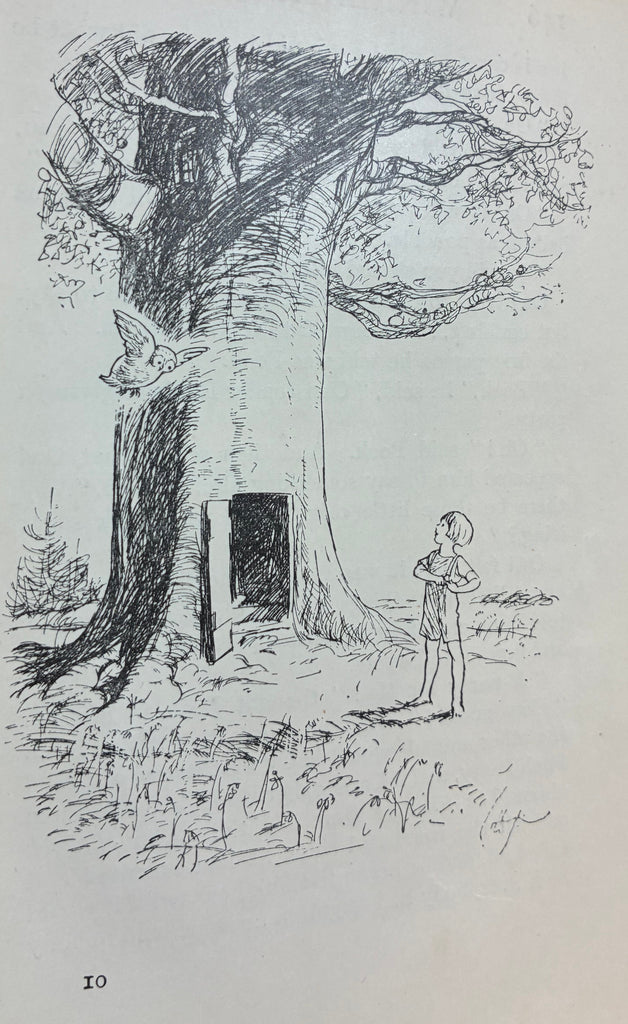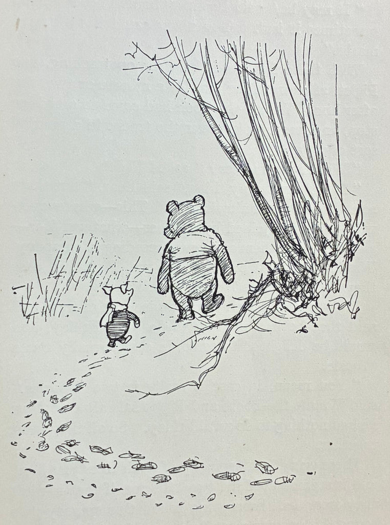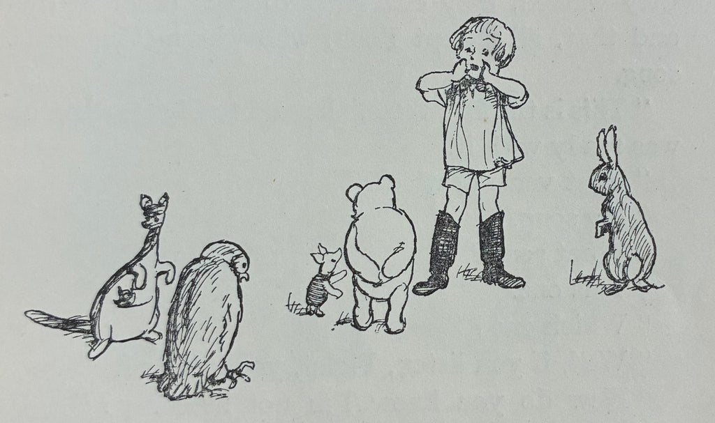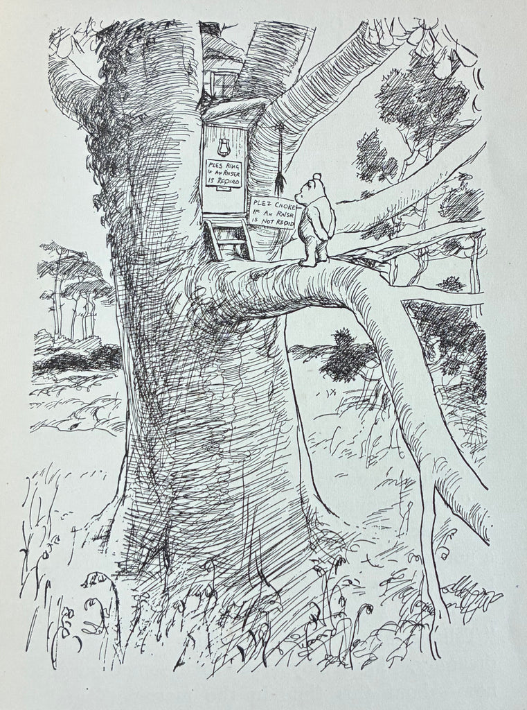 MILNE, A[lan] A[lexander]. Winnie-the-Pooh. With decorations by Ernest H. Shepard. London: Methuen & Co [1927]. 12mo, xvi 160pp. Green cloth pictorially stamped in gilt. Pictorial map endpapers; b&w illustrations throughout. Spine edges and corners a tad rubbed, spine a bit cocked, light waffling to cloth at rear spine edge, slight discoloration to first and last sheets, else an internally clean, bright copy.