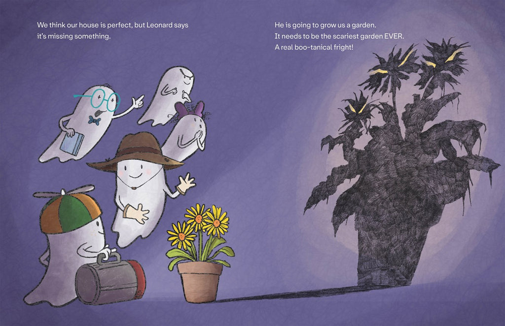 Leonard the cheerful, can-do ghost is growing his family a garden. The other ghosts want it to be the scariest garden EVER! But the more Leonard sows, the less creepy their new garden seems. He plants plants flowers that are pretty instead of putrid, and installs bird feeders instead of bat boxes. Has Leonard made a grave mistake? Or will this botanical surprise blossom into a spook-tacular delight?