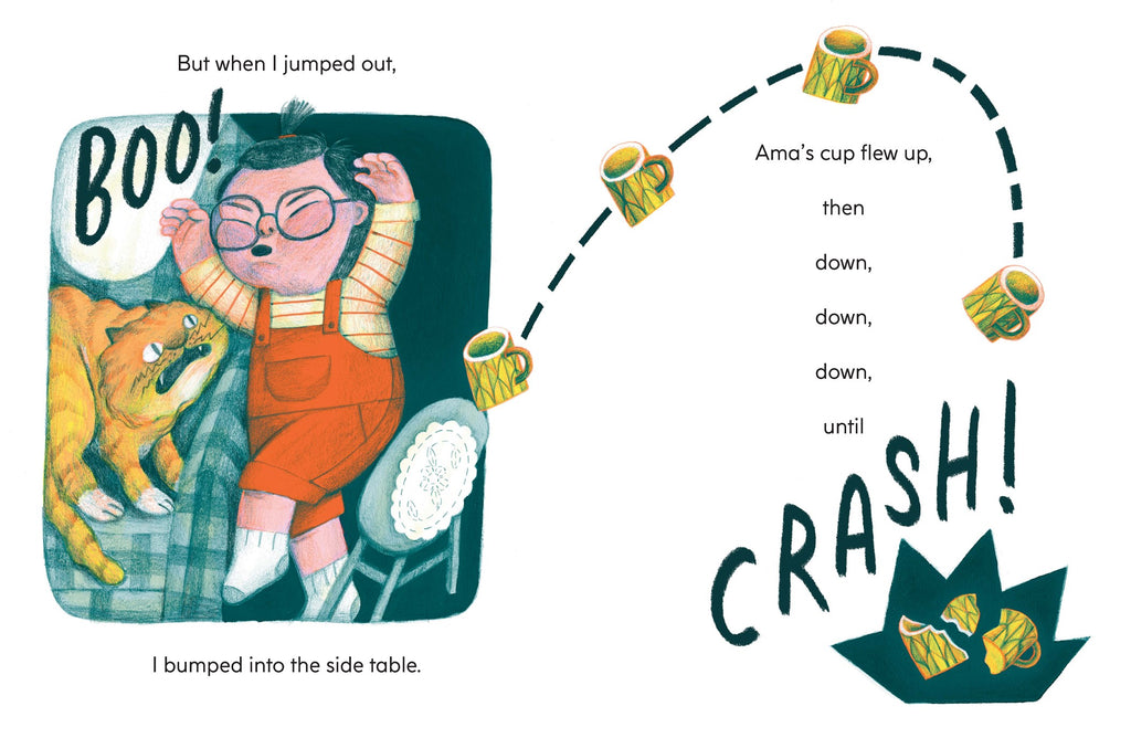 When Mei Mei accidentally breaks her ama's favorite cup, she's convinced it's the end of the world. What if Ama is angry? What if she yells? What if she kicks Mei Mei out of her house? Mei Mei can't face it. But when Mimi, the innocent cat who witnesses her crime, ends up being blamed, the guilt is too much! Mimi's accusing eyes follow Mei Mei until she just can't take it anymore, and the truth comes spilling out.