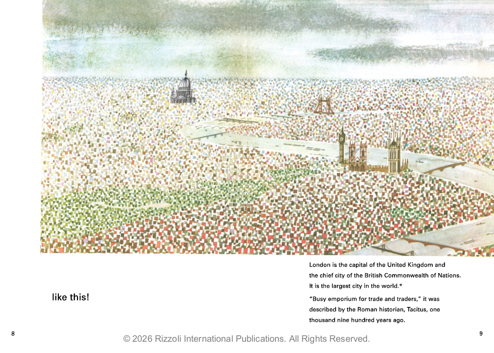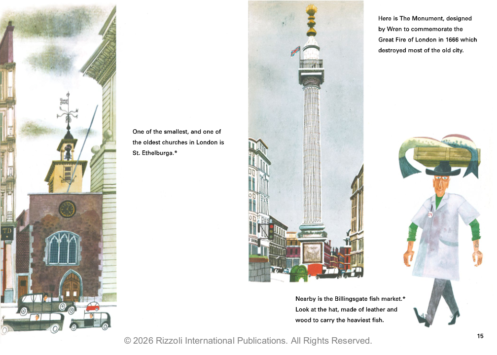 First published in 1959, This is London is a tour of the city through Sasek’s charming and stylish illustrations. Featuring Sasek’s impressions of the city’s beautiful buildings, historic monuments, bridges, parks, and shops, and including such landmarks as Piccadilly Circus and the famed Underground, the result is a colorful, sophisticated celebration of the highlights of one of the most exciting cities in the world. The illustrations are paired with a lively text to keep a playful sense of fun.