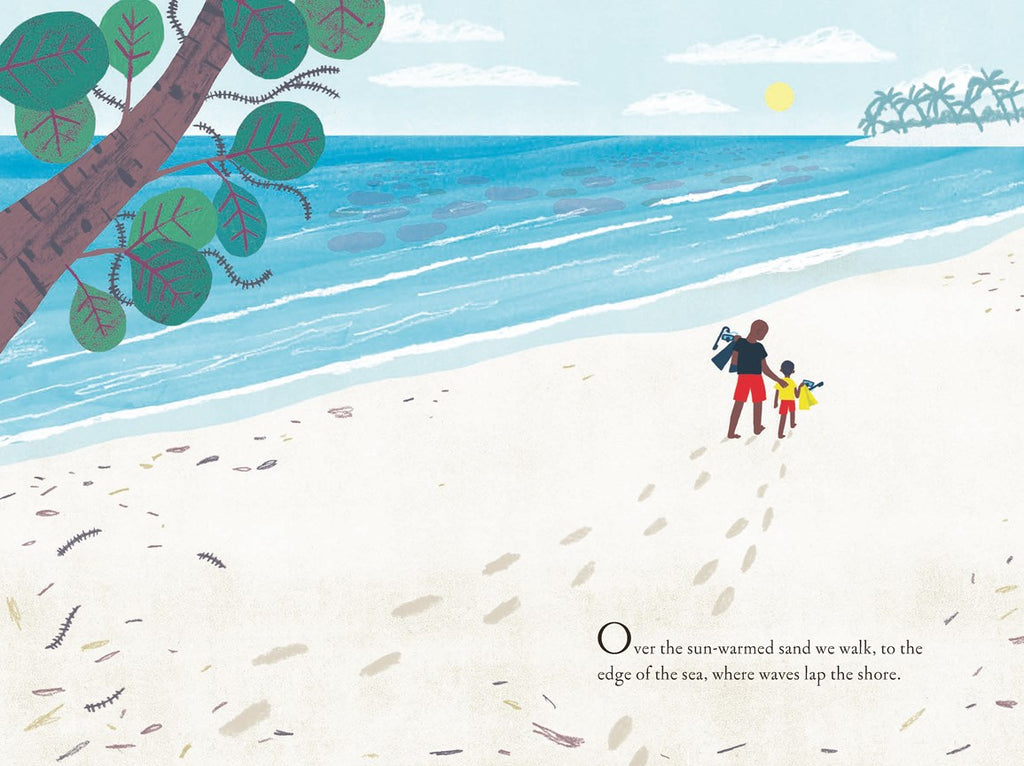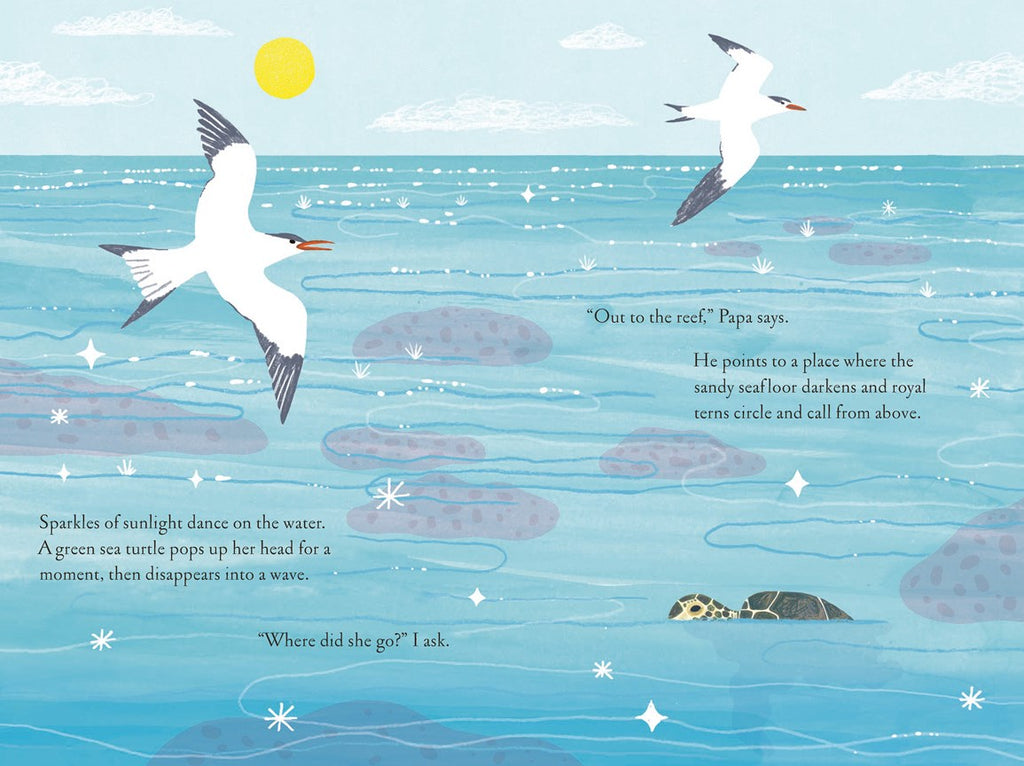 Over the reef, terns circle and frigate birds soar. Sea turtles paddle and balloonfish float through the sparkling waves. But under the reef’s arms, where nurse sharks prowl the seafloor and octopuses slip away into shadows, there waits a living rainbow of peacock flounders and blue damselfish, pink anemones and creamy conch shells. Discover the dazzling world just beneath the waves—over and under the coral reef.