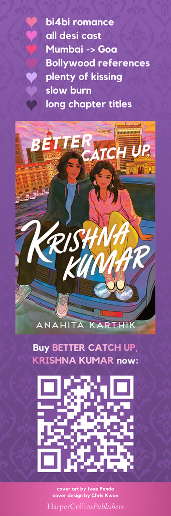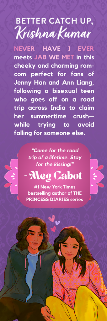 But when her flight home is delayed right as a distinctly flirty text from Amrit lights up her phone, Krishna is determined to seize her last chance at a perfect first kiss with Amrit, even if it means asking her cousin-turned-nemesis, Priti, for help. Because Amrit is miles away at a family wedding—and Priti’s best friend, Rudra Desai, is the only one with a car.