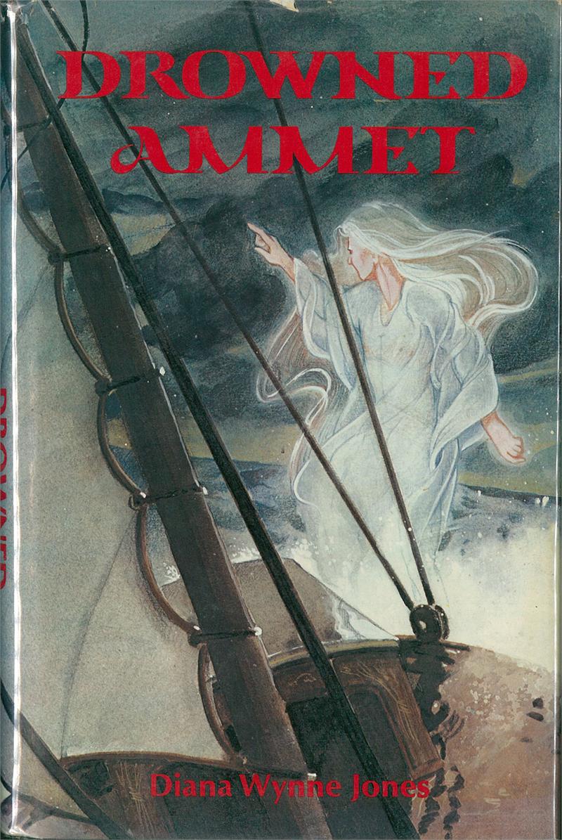 WYNNE JONES, Diana. Drowned Ammet. NY: Atheneum, 1978. 8vo, vii 255pp. Dark green cloth stamped in gilt on spine with embossed title on cover. Blue endpapers. A very good copy with minute bumping and rubbing on board ends, slight foxing to outside of leaf and previous owner's stamp on front free endpaper, in publisher's original full-color pictorial dust jacket (not price-clipped with minute chipping at upper edge of boards).