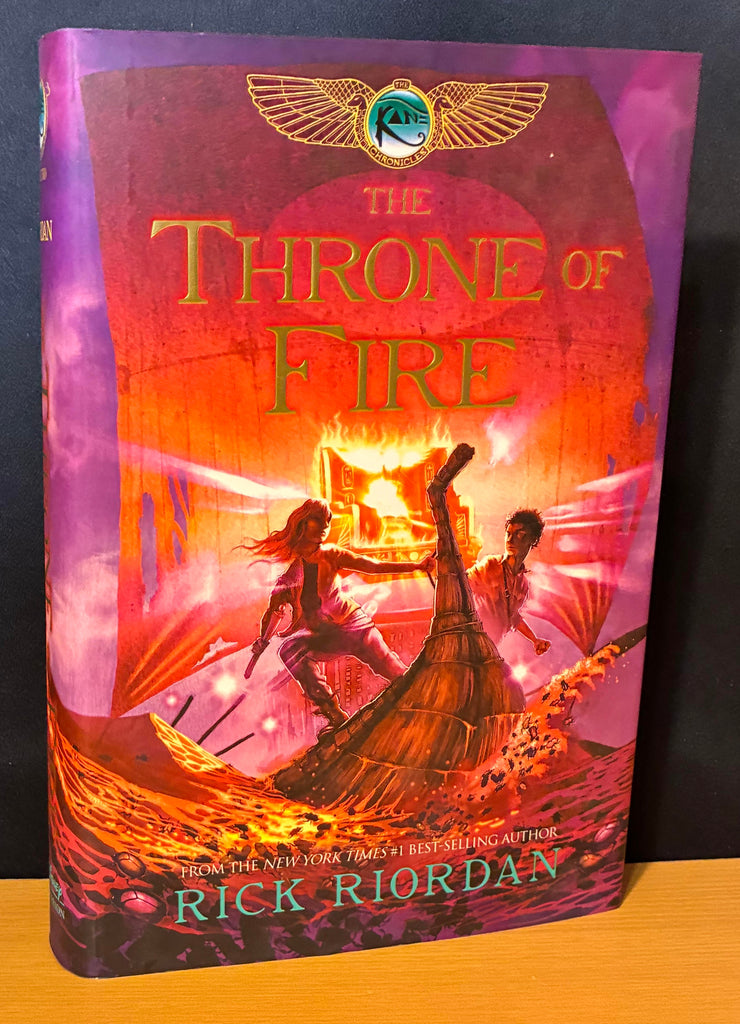 RIORDAN, Rick. The Throne of Fire. The Kane Chronicles Book 2. NY: Disney, [2011]. 8vo, [x] 452pp. Purple boards spine stamped in gold. Red endpapers. A fine copy in original color pictorial dust jacket. Signed by the author, Rick Riordan.
