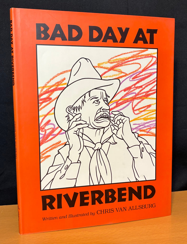 VAN ALLSBURG, Chris. Bad Day at Riverbend. Boston: Houghton Mifflin, 1995. 4to, [30]pp. Black half-cloth spine stamped in silver, with red boards, pictorially stamped in black. Black endpapers; color and b&w illustrations on nearly every page. A bright, clean copy, with light bumping at upper end of binding on pages, in original pictorial dust jacket (slight wear to upper spine end). Signed by two-time Caldecott Medalist, Chris Van Allsburg.