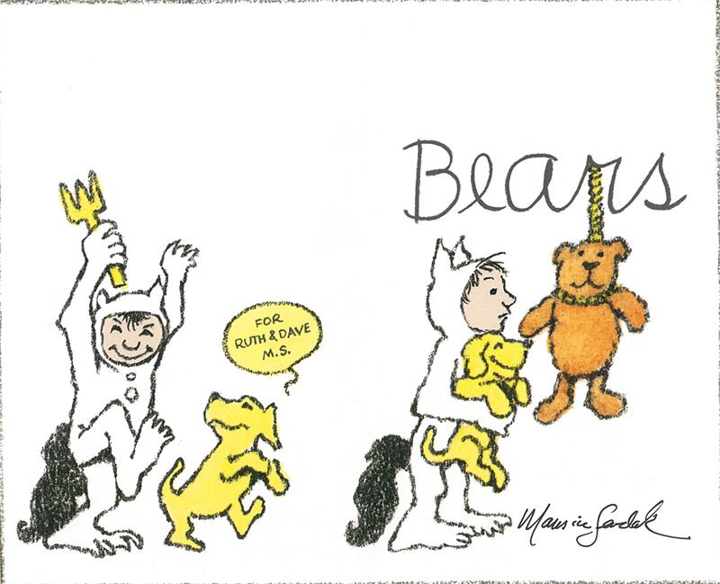 KRAUSS, Ruth. Bears. Pictures by Maurice Sendak. [NY: Harper Collins Publishers, 2005]. Oblong 12mo, 24pp. Full-color pictorial boards. Full-color endpapers; full-color illustrations throughout. Fine copy in publisher's original full-color pictorial dust jaket. Signed by the artist, Maurice Sendak.