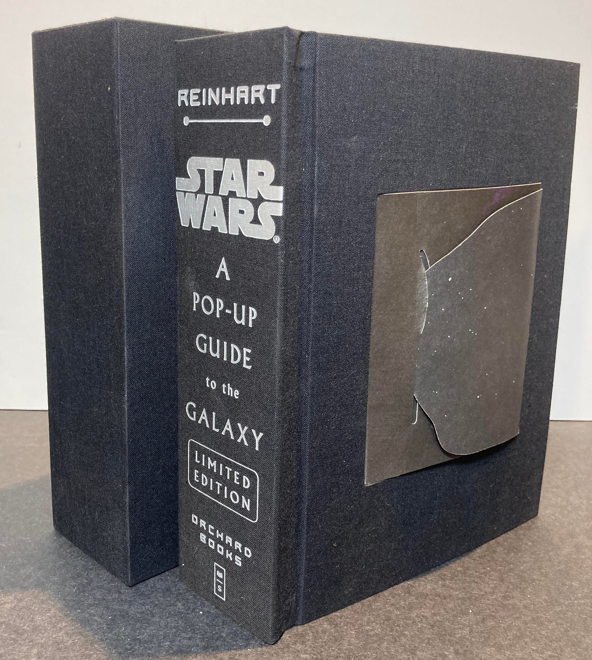 REINHART, Matthew. Star Wars: A Pop-up Guide to the Galaxy. [NY: Scholastic, 2007]. 8vo, [10]pp. Black cloth with spine stamped in silver and color pictorial pop-up affixed to the cover, housed in black cloth slipcase with satin ribbon pull. Color, pop-up illustrations on every page. A fine copy in original black cloth slipcase, housed in publishers original cardboard shipping box. Signed by the author/artist, Matthew Reinhart.