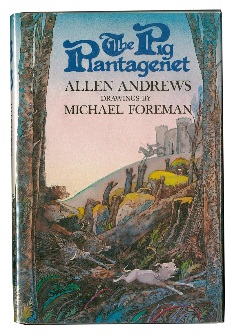 ANDREWS, Allen. The Pig Plantagenet. With drawings by Michael Foreman. NY: Viking Press [1981]. 8vo, [iv] 199pp. Brown quarter cloth spine stamped in gold, blue gray boards. Top edge a tad faded, else a fine copy in the original color pictorial d.w. (slight edge wear). With bookplate, signed by Michael Foreman, laid in.