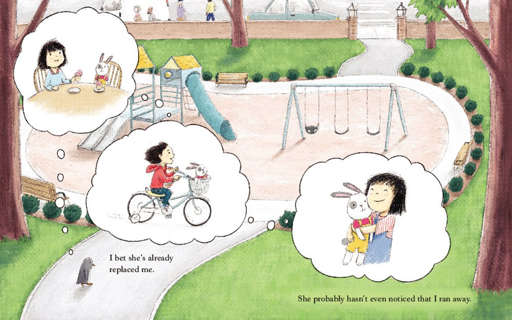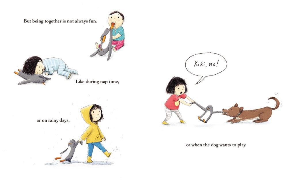Peanut the stuffed penguin does everything with Pearl. That means napping and playing, but it also means getting drooled on and dragged around. One day, Peanut has had enough and decides to slip out of Pearl’s backpack. At first, life without Pearl is all Peanut dreamed of. Freedom! Independence! But then it gets rather lonely.