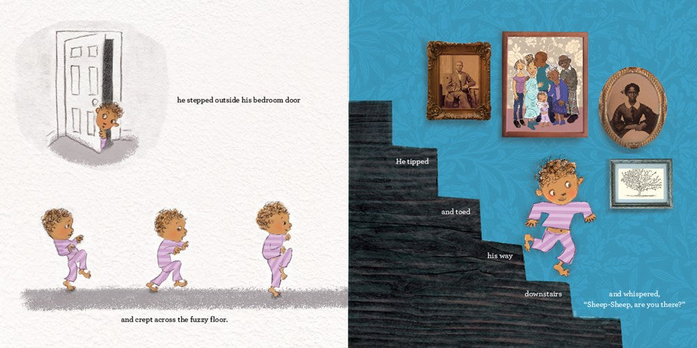 Suddenly everyone’s very awake, and a housewide search breaks out waaay past bedtime. Nana searches up high, Grandpa searches down low, and still no one can find the sheep!