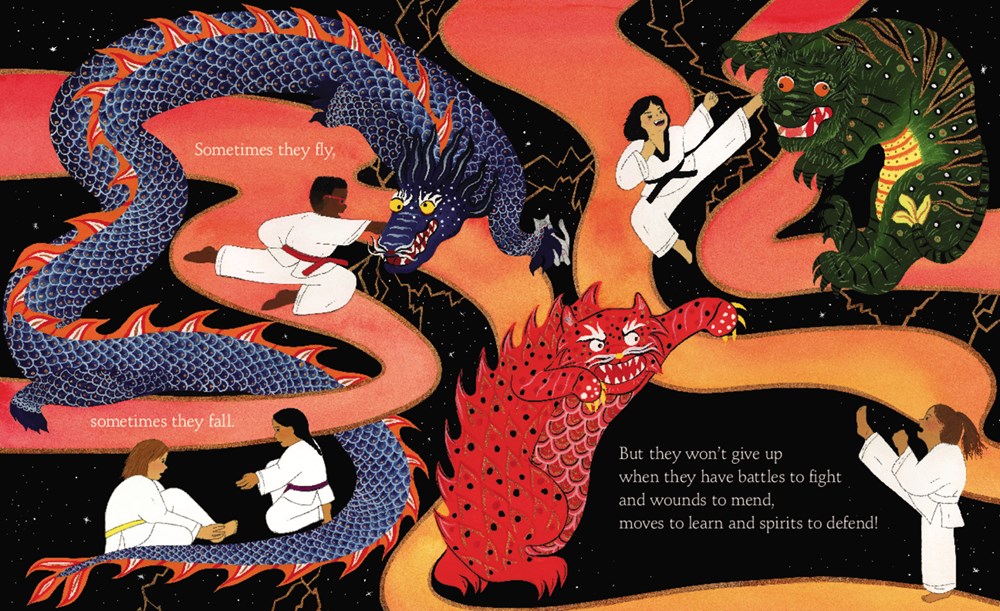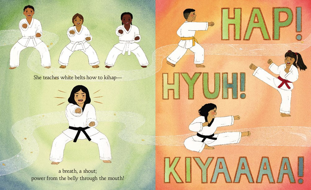 Sunny is the grandmaster’s daughter. She sweeps the floors, waters the plants, and practices with her nunchucks—sometimes she even makes mistakes. She teaches other young students how to kihap. But when their kihaps grow loud and bold enough to shake the mountains, Sunny leads her friends in defending the dojang against magical creatures . . . or perhaps that’s just in their imaginations. It’s up to the reader to decide!