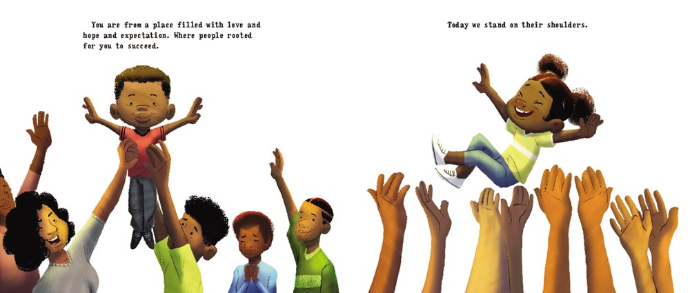 This is a spare, inspiring tribute to the roots that help shape young children into whoever they want to be. The poetic text describes how it takes a village to raise a child and that all of us stand on the shoulders of those who came before. Like I Am Enough and Eyes that Kiss in the Corners, this book will resonate with readers of all ages.