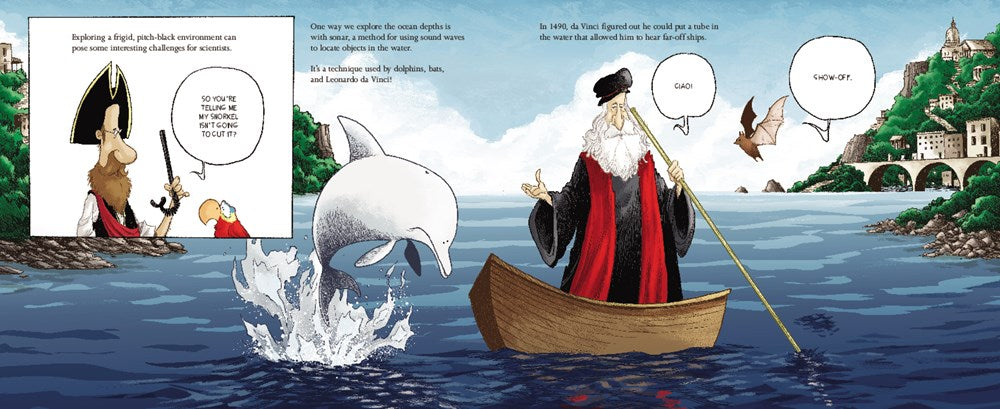 Ahoy, mateys! Join Brownbeard the pirate and his first mate, Alan the parrot, as they explore the deep sea. The ocean covers almost three-quarters of the Earth, and yet much of it is somehow still unexplored. In this hilarious but highly informative picture book, readers will explore the ocean depths and meet the unusual bioluminescent creatures who live there. They’ll learn about ancient undersea explorers and travel to the very bottom of the ocean floor in the Mariana Trench to learn about the surprising things that live there. Award-winning author-illustrator Drew Sheneman will take inquisitive young readers on an adventure in learning in this hilarious and highly detailed exploration undersea.