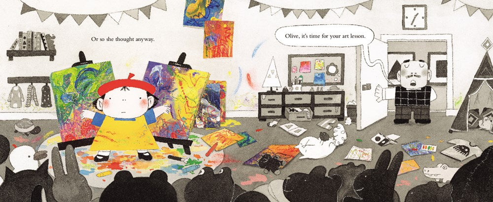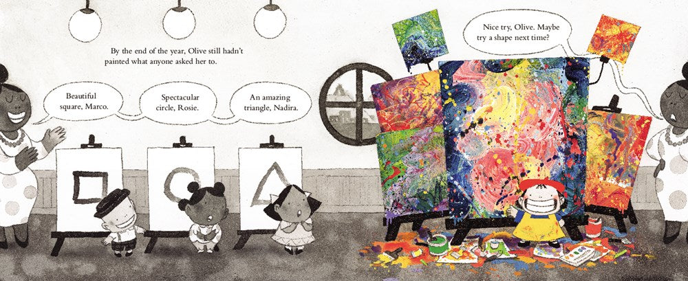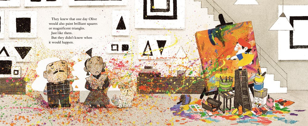 Her parents are also artists—serious artists—who paint prim, proper, perfect shapes. They know Olive has the talent to follow in their footsteps.
