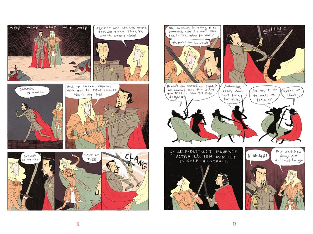 Nimona is an impulsive young shape-shifter with a knack for villainy. Lord Ballister Blackheart is a villain with a vendetta. As sidekick and supervillain, Nimona and Lord Blackheart are about to wreak some serious havoc. Their mission: prove to the kingdom that Sir Ambrosius Goldenloin and his buddies at the Institution of Law Enforcement and Heroics aren’t the heroes everyone thinks they are.