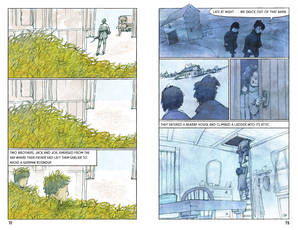 Run and Hide tells the stories of these children, forced to leave their homes and families, as they escaped certain horror. Some children flee to England by train. Others are hidden from Nazis, sometimes in plain sight. Some are secreted away in attics and farmhouses. Still others make miraculous escapes, cresting over the snow-covered Pyrenees mountains to safety.