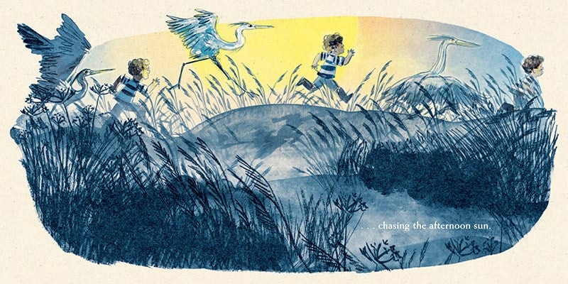 One summer morning, Boy wakes up to discover Blue. Curious, he follows this mysterious bird on a day’s worth of adventure, play, and exploring the nooks and crannies of their coastal home. And at night, they soar, with hands and wings reaching for the stars. But as the sunrise peeks out, Boy is forced to say goodbye to Blue. For now.