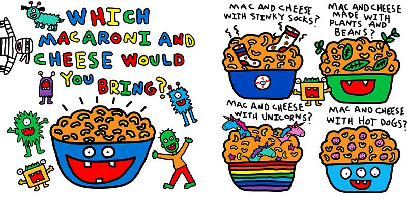 We all know kids love macaroni and cheese. But who knew monsters do too? In this story, the monsters hold a mac and cheese party (no humans allowed) and share all their creepy twists on this favorite food. What do zombies like? Mac and cheese with eyeballs! How do sea monsters eat their mac and cheese? In the bathtub, of course! The party is going fine until the monsters are surprised by the unexpected arrival of HUMANS at their party.