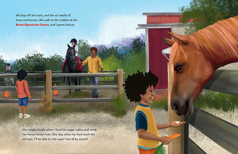 There's only one place where you can see bodegas and businesses bustling on every street, taste the most delicious empanadas in the world, smell the salty sea air of Pelham Bay, and pet horses at the Bronx Equestrian Center. From sunrise to sunset, Santiago and Mami have many treasures to enjoy in their neighborhood on a beautiful Saturday, including colorful birds on the Siwanoy Trail and fresh cannolis on Arthur Avenue. This energetic and joyful family story offers both a journey through and a love letter to this special borough.